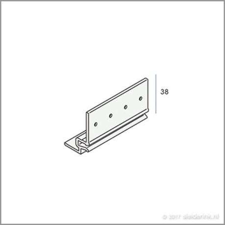 Plaatst u de Keralit dakrand als boeibord zonder overstek? Dan gebruikt u het boeiboordmontageprofiel. Door het eenvoudige kliksysteem hoeft u na deze montage alleen nog de dakrand in het montageprofiel te klikken, en de dakrand hangt nu zelfstandig. De dakrand kan met het grootste gemak naar links of naar rechts geschoven worden om de juiste positie te bepalen. Zodra de hoek- en tussenstukken zijn bevestigd, kunt u de dakrand met een tweede klik verder in het profiel klikken. Hierdoor komt de dakrand muurvast te zitten.